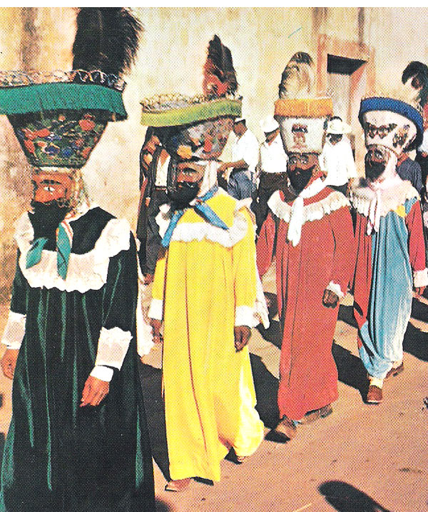 Near Cuernavaca is a small town called Tepoztlan, home of some crazy dancers who don some pretty far out costumes before parading through the streets to the sound of a marching band. I took a video of a gang of them last year in Xochimilco. Anyway, I found a cool postcard featuring these guys. Want it? It can be yours….all you need to do is leave a comment claiming the card and then send me the address you want it posted to using my Contact page. Has it already been claimed? Perhaps there’s another card waiting to be claiming – check out the Postcard page.