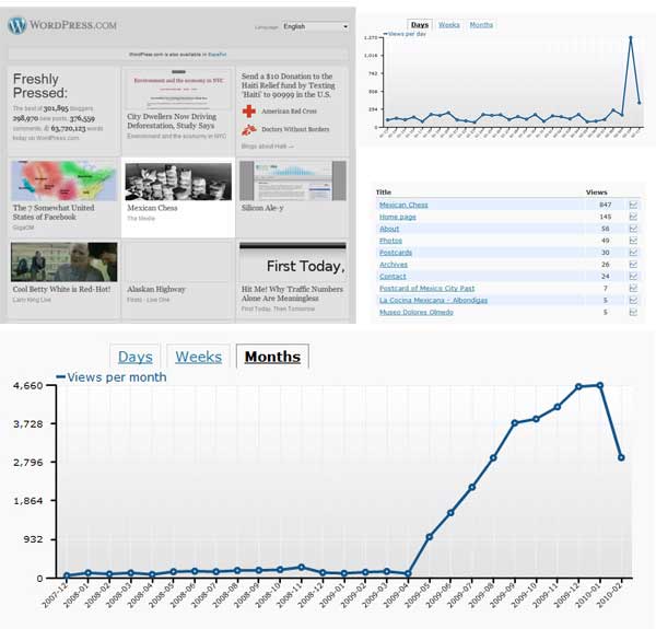 It’s been almost a year since I moved my blog from Blogger to WordPress, and today seems like a good day to share my WordPress experience. Not least because yesterday I got my highest number of visitors ever. I rarely look at the statistics to be honest, but I got an email from WordPress.com telling me that my post on Mexican Chess was being promoted on their homepage. I also got a load of comments from new people. So I had a peek. Over a thousand. Woo hoo.