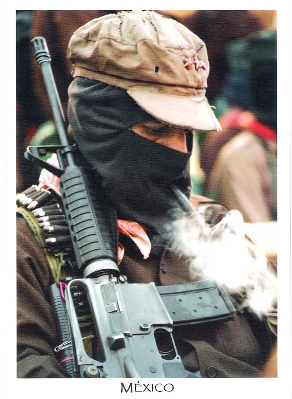 Have you heard of him before? He leads a generally pacifist revolutionary/terrorist movement in the south of Mexico. In 1994 (I think) they took over the town of San Cristobal de las Casas, and there was a fair bit of bloodshed. But since then they’ve been hiding out in the hills making T-Shirts for tourists….