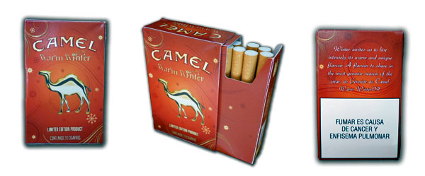 Unless you are a cigarette manufacturer. In which case the next generation, and the one after that, is the exact market you’re going for. Which brings me back to Mexico. What is considered good, responsible practice in Europe doesn’t apply legally to the rest of the world. A good, responsible company wouldn’t need to be legally bound though to put those ideas into practice to do so, though. Would it? Yes it would. Cigarette art is alive and well in Mexico. Cool new packet designs, gimmicky boxes and other eye catching ‘cool’ is put to good use. Yesterday I bought the special, and limited, edition Winter Warmer Camel cigarettes with their cool side slide opening carton. Because yes, despite my apparent anti smoking stance, I am a packet a day man.