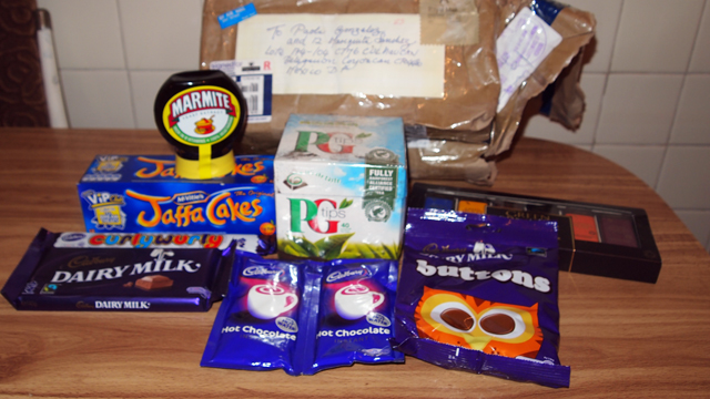 Christmas just isn’t right in Mexico. Too warm and sunny. Zero chance of snow. And tasty as bacalao is, it’s not a Christmas taste. But I will have a Christmassy tasting Christmas this year. Thanks to a little package that made it’s way from England courtesy of someone who knows the joy of receiving little bites of Britain. Jaffa Cakes and marmite! And tea bags for Paola. I hate the stuff. Very un-English, I know.