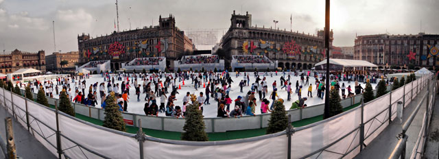 The controversial rink was back in the Zocalo again this year. Many people decry it as a monumental waste of money by a mayor looking to win hearts and, more to the point, buy votes in the 2012 presidential election. On the other hand, there are huge queues to have a go, and lots of happy faces skating on ice. We don’t get much ice in Mexico DF. This is the one opportunity for many of them. Having said that, the weather in parts of Mexico is expected to dip to as low as minus 5 Celsius in the next day or two. Not in Mexico City, I hope…