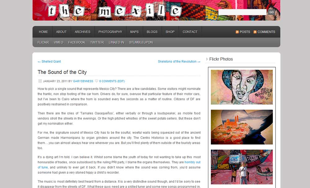 I love the new look of your blog. The reds of the header and the grays look great together and “The Mexile” lettering is striking. Very pleasing to the eye.