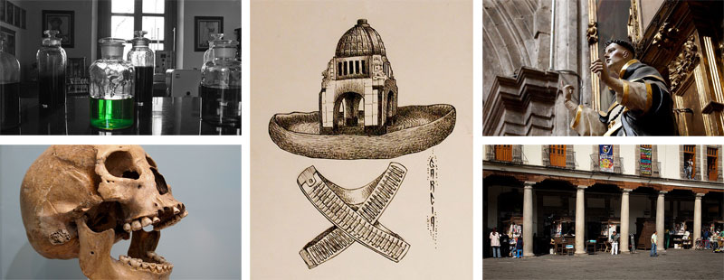 Next stop was the Santo Domingo church. Which I am sure has a few patrons that visit straight after viewing the exhibits in the Medical School to make extravagant promises to him upstairs in return for not being cursed with any of those nasty STDs. It’s another of Mexico City’s glorious churches with painted dome and flocks of angels.