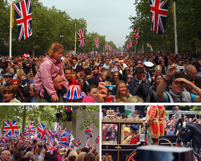 Yesterday was Will and Kate’s big day. It was clear that a million or so people were going to join them, and I don’t like being the odd one out, so I booked a bus up to town. I remember watching the Queen’s Golden Jubilee celebrations in 2002 and regretting not going. These events don’t come around very often, so you have to take the chance when it comes.