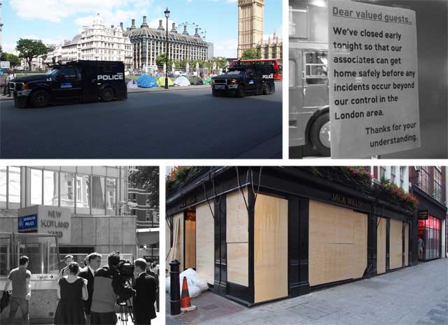 Paola and I had been looking forward to our trip to London for weeks. We planned on having an absolute riot. Little did we know as we arrived, that thousands of other had a similar idea in mind. We didn’t see any rioting while we were there, but then we didn’t go looking. We did experience some minor inconveniences though. Some stores were closing early, to allow staff to get home safely. Others decided to board up their windows.
