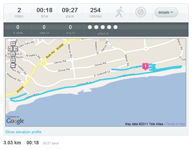 I’m running again, too. Getting fit and healthy helps dull the cravings. And it means I can play with my favourite toy, my Samsung Galaxy S2. I have downloaded the RunStar app. It uses GPS to record the exact route I take, and tell me exactly how far I’ve run. The accuracy is quite frankly astounding. It has virtually every step perfectly placed and measured. Being able to record your runs like this is so motivational. And geeky. I like geeky. The app also allows me to upload to the Daily Mile site – see my profile here. I have a target. To get fit enough to be able to record a sub 50 minute time at the Somerley 10km event I have registered to run in. Here goes…
