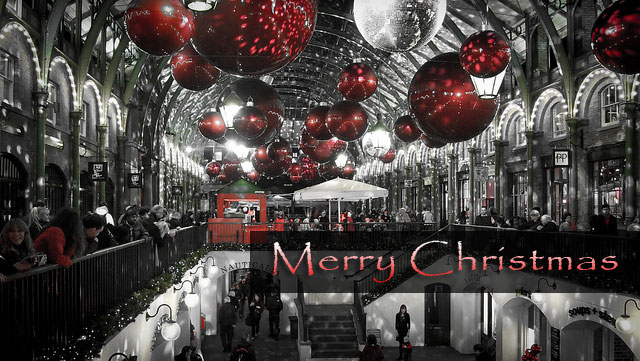 I have just one day of work left, and that’s a short day. Then I have a five day Christmas break. Which I shall enjoy, with Paola, starting with a two day trip to London to see the lights and sights. This is the final post before Christmas. So we would both like to wish you all a very, very Merry Christmas by way of this Blog Card. The photo was taken by me in Covent Garden in London about a month ago. We hope you all have a wonderful time with your friends and families and get all the goodies from Santa that you’ve asked for. Feliz Navidad amigos y amigas!