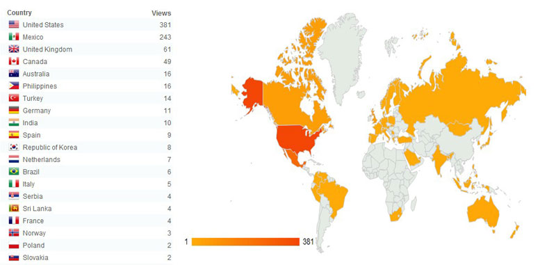 Some real people do visit my blog though. Not as many, truth be told, as used to visit when I was blogging from Mexico. Most months, it’s half as many.But still, it’s about the quality of the audience, not the quantity. So let it be known, I highly value you chaps and chapettes who are still following along. I know who you are! Well, some of you. But thanks to a recent improvement in WordPress’ stats, I do at least know where ya’ll come from. Mostly the US. Followed by Mexicans. Those lazy, feckless Brits come in a distant third. A cheery hello to you brave Slovakians. Both of you.