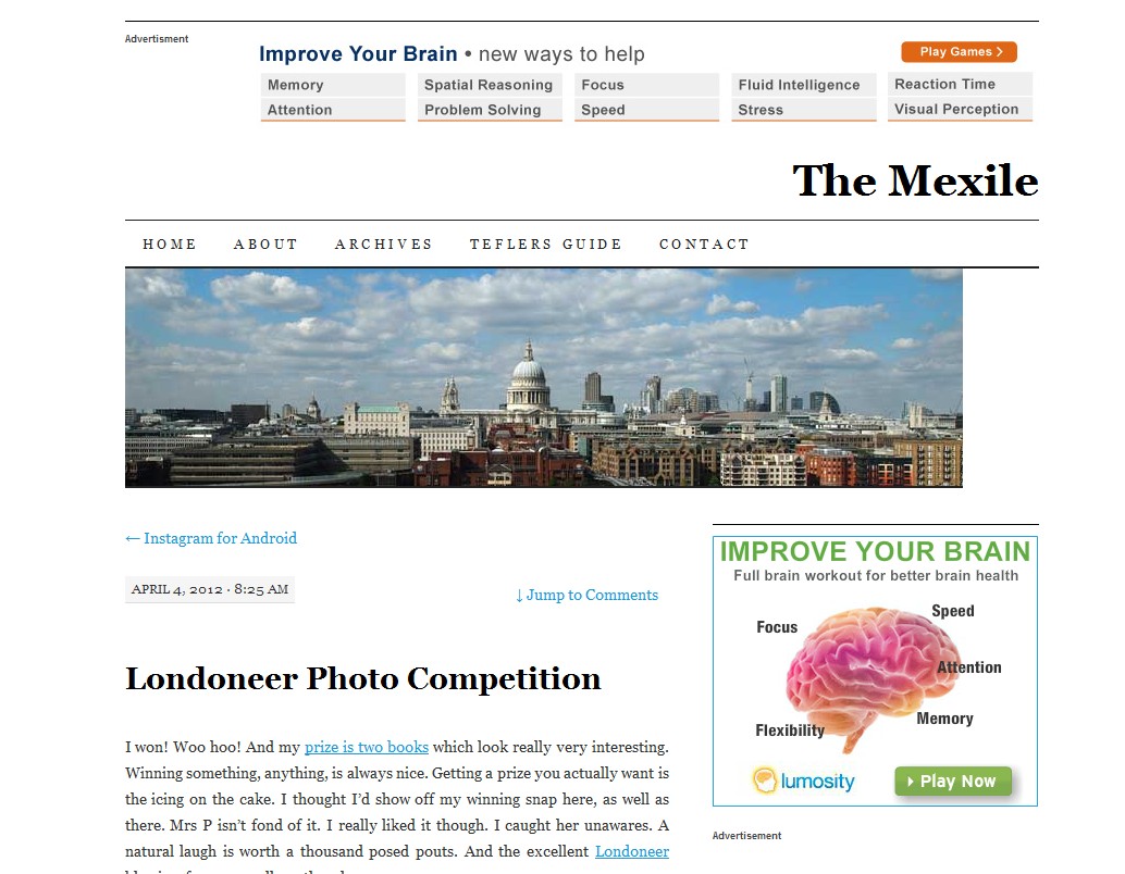 They have launched WordAds recently though. Finally, I can run ads on my blog and get paid. I gave it a whirl. For about ten seconds. And then took it straight off. It’s a ghastly implementation of a good idea. It screwed up the formatting of my blog, sending lines off the edge. I like the idea of a square ad in the sidebar. But it needs to fit my blog theme, and not go off the edge. I do not like the idea of the huge full width top ad banner. Horrible. I have serious doubts as to whether I’d ever have made much cash. But I’m not willing to trash my blog to find out.
