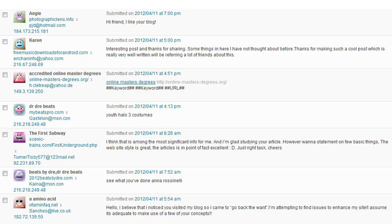 I’ve had a total of 4,893 comments so far. Admittedly half of them are probably mine. Although it has to be said I lost all the comments I’d previously received when switching to WordPress in 2009. My Akismet stats page tells me that they’ve stopped a total of 39,979 spam comments from polluting my posts. That’s quite some tally. The spam ranges from blatant flattery, to rude critique…anything to get a response. And to keep the spam in place.