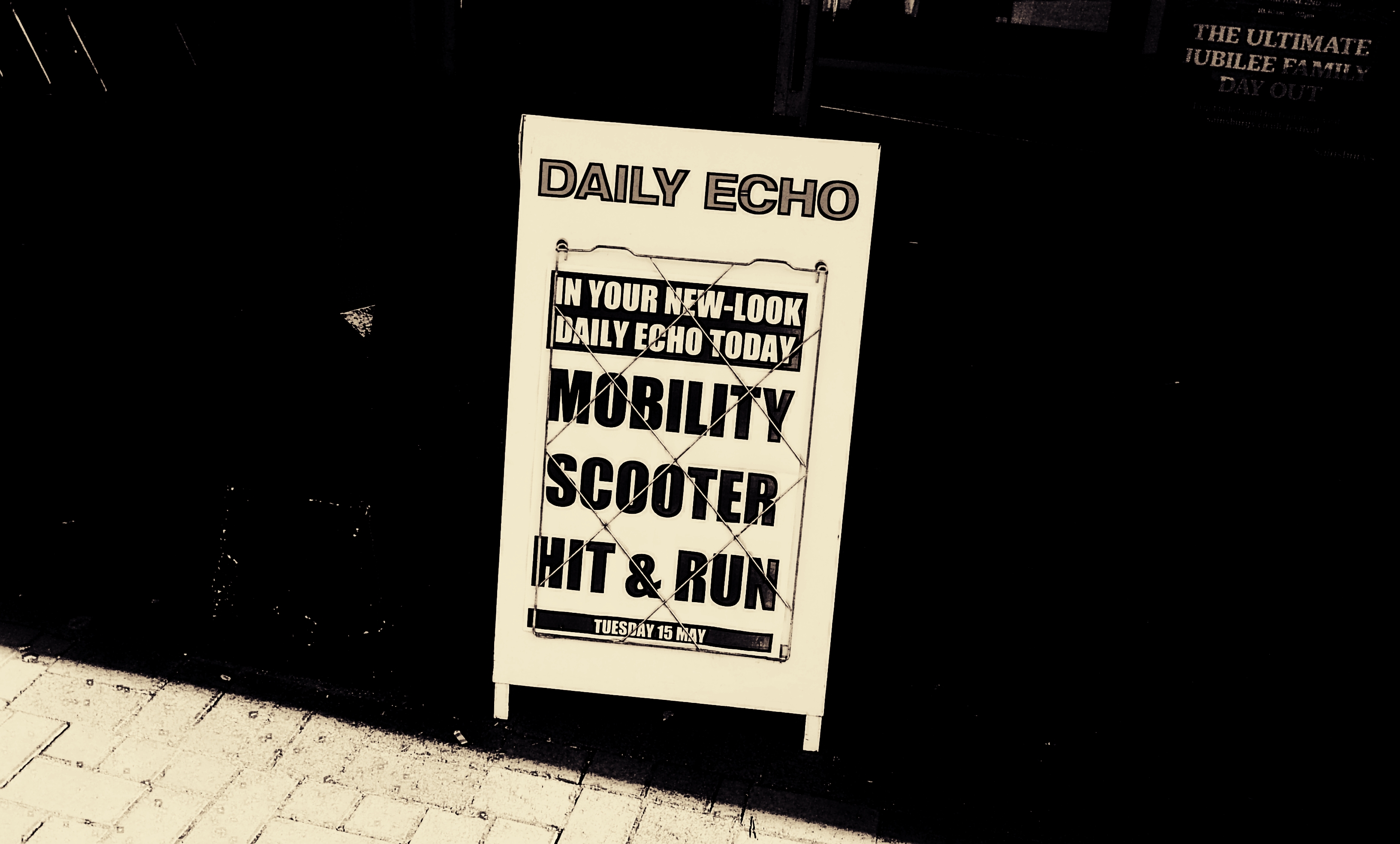 The photo below is a real front page story down here in deepest, darkest Dorset. The good people of Bournemouth are living in fear of old ladies and their mobility scooters. One old lady in particular, who callously ran over a ladies leg and then, having loitered around for about five minutes, fled from the scene at top speed. So, about 5  mph then. Distressed bystanders commented on how powerless they were to stop her. One of them lamented, ‘what can you do, rugby tackle a disabled pensioner in a mobility scooter?’ The first though that popped into my mind, was that one could casually stroll after her and place one hand on the front of the scooter to prevent its feeble motor propelling the vehicle any further. But I wasn’t there. I just simply don’t understand the terror.