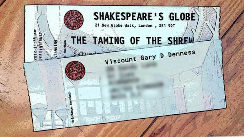 I suspect I’ll enjoy the play though, and the occasion too. I’ve decided to ‘play along’ with it all and get myself into character. You see, here in Blighty we have so many more choices when we book tickets to go out. We don’t just get to choose the seating. There are other options available. And let me tell you, I don’t see why I have to be boring old ‘Mr’ every single time I book something when there are so many more glamorous salutations to choose from. Mr Denness will not be visiting the Globe. Allow me to introduce you to Viscount Denness. I could have gone for a more senior noble title I suppose. But I just like the sound of Viscount. It looked good on the tickets when they came to. I could get used to being a Viscount, very easily.