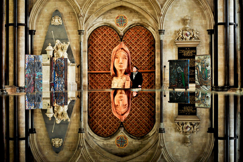That photo up there ^, it’s a nice enough shot, taken inside Salisbury Cathedral. It’s a fairly decent example of how the Fuji X-S1 copes in low light too. Then I turned my camera onto a water pool, just across from the wooden carving above. The reflections were enchanting, especially of the stained glass windows.