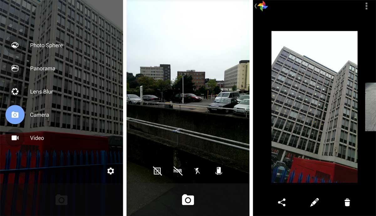I have a plethora of photography apps on my HTC One. Some are camera apps. Some are filter apps. Some do both. Some are good. Some need deleting. One is great. The most recent one. Google’s stock camera app. Let me tell you where it scores. It’s got the cleanest interface of any photo app. Swipe from the left to bring out camera options, such as the standard camera, video, lens blur etc. Or swipe from the right to bring out the gallery of previous photos. Or hit the option dots to select flash, HDR or the grid. The screen is devoid off distractions, letting you get on with framing your photo.