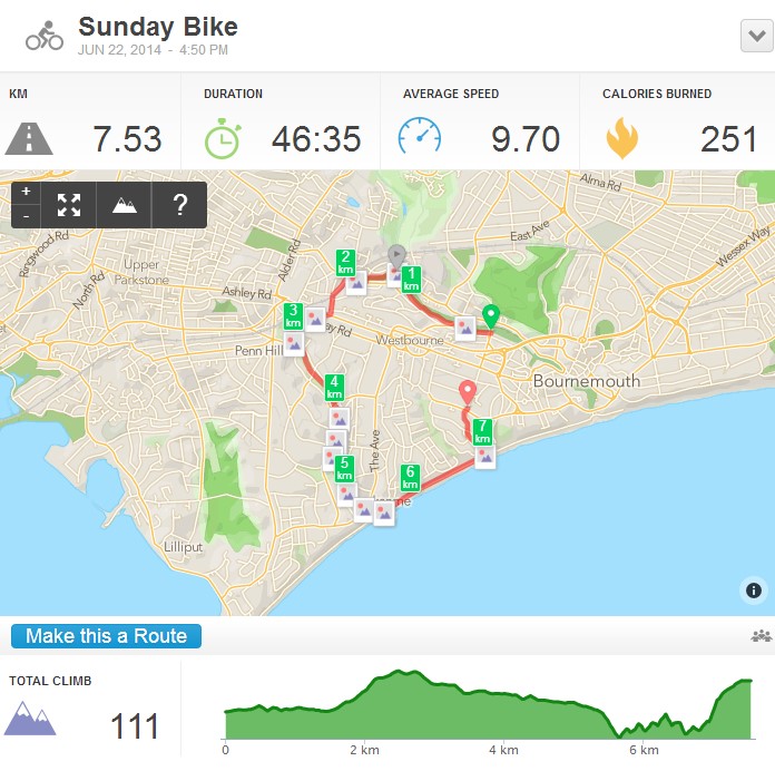 Summer is here, the sky is blue, the scent of freshly cut grass lingers in the morning air, the waft of BBQs fills the afternoon air and the evening brings a happy haze enveloping the woodlands along this part of glorious English coastline. It’s perfect for a bike ride! Come along for an evening cycle with me. And with Runkeeper.