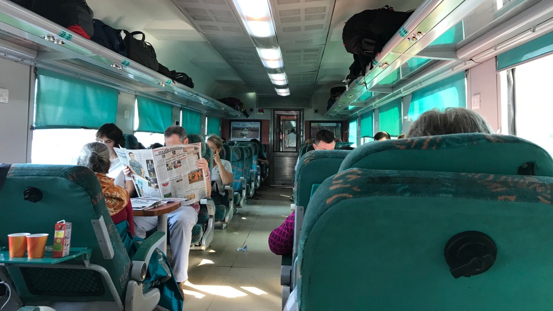 We departed Delhi early in the morning, catching an Ola taxi to the train station. Or as close to the train station as our driver could get. The crush of people, tuk tuks, roaming animals and other vehicles became more dense the closer we got, and we gradually ground to a complete halt. The final couple of hundred metres were on foot, pushing squeezing and banging past the many obstructions on our way to the station entrance. Once there, we queued up to go through security.