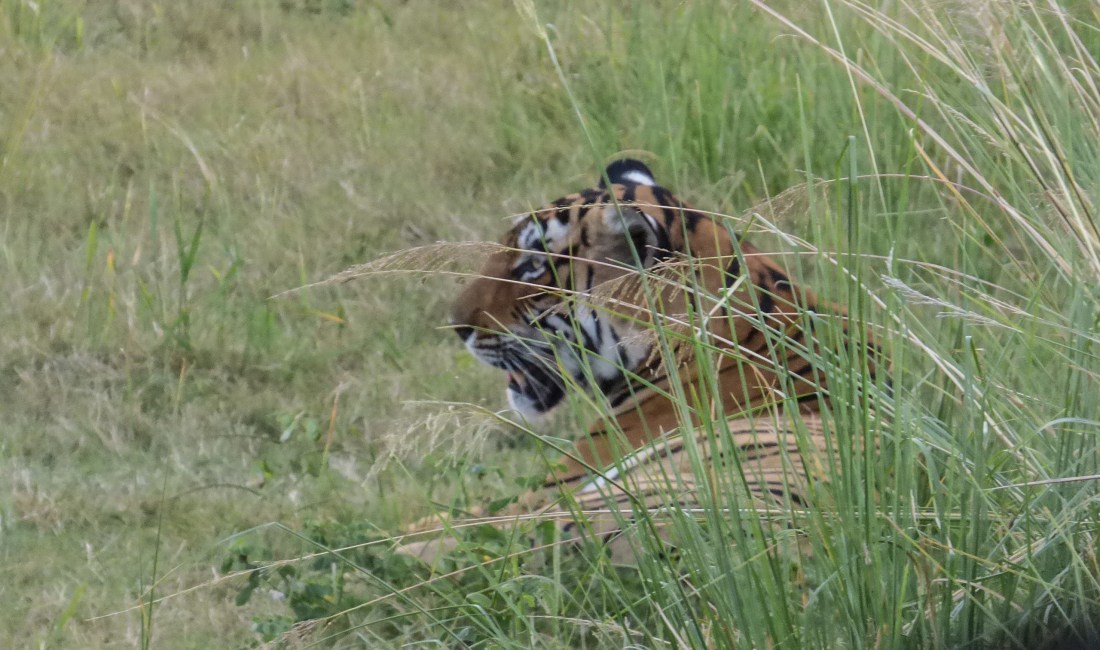 I suddenly had a bright idea. And made my third and final mistake. I turned to the lady on my left and asked her if it would be at all possible for me to borrow her camera, just for a moment. I explained the situation. And without hesitation, she whipped her memory card out of her camera and handed it over. I popped my card in, found a good spot in the truck to shoot from, and hey presto. You can see the result above. How was this a mistake? Why oh why oh why did I first ask the lady to my left to borrow her mid range compact bridge camera. When on my right was a very affable gentleman, who I had been chatting to the whole way there, with a top of the range DSLR with a mighty zoom lens stuck on the front of it. Perhaps then my photo would have been correctly focussed on the tiger, rather than the grass in front of the tiger.