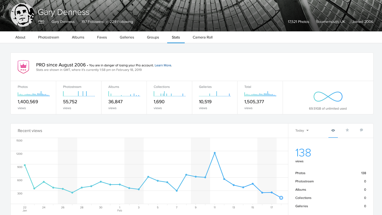 Every year since 2006, I have ponied up about £25 and bought my annual Flickr Pro membership. This year, under SmugMug ownership, the fee has doubled to nearly £50. That might be reasonable value for the product they offer, although I might suggest that Flickr should have rolled out the promised improvements before increasing the price – not after. Doubling the cost has cost them at least one customer. It’s the wrong year to hit me with an increase. I’m consolidating my online presence and reducing my costs.