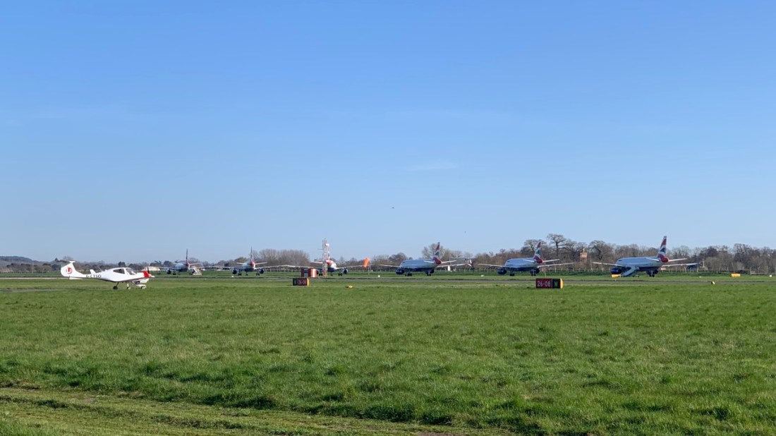 Every now and then, a British Airways flight will land here, if it’s been diverted from Heathrow or Gatwick for some reason. It’s a fairly rare occurrence though. But today there’s about a dozen BA jets and a Virgin Atlantic aircraft parked up at Bournemouth. Looks like the main London airports all ran out of space for their grounded fleets.
