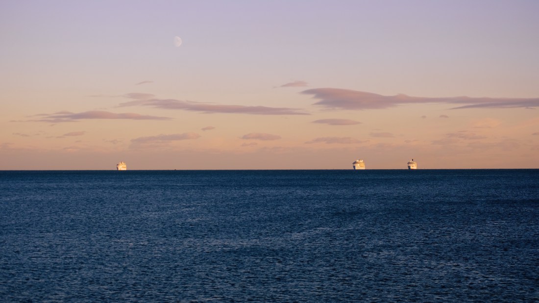 Mrs P and I walk along the Bournemouth seafront most days. And every day for almost a year, Poole harbour has been home to up to half a dozen giant cruise ships. There’s always at least one or two of them, lurking out to sea. But not today. Today, the horizon is empty. Naked.